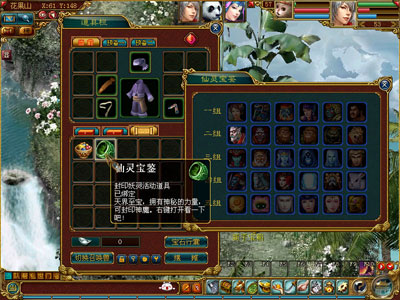 同时在任务道具栏还将获得一个仙灵宝鉴,右键点击妖灵碎片,将之封印在仙灵宝鉴中,仙灵宝鉴中相应的召唤兽图鉴将亮起。